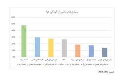 قرار گرفتن در معرض ذرات معلق در سال ۲۰۲۱ باعث کاهش میانگین امید به زندگی جهانی به میزان تقریباً یکسال و هشتماه شد. علاوهبر ارتباط این ذرات با بیماریهای خطرناکی مانند اختلالات ریوی و تنفسی، میتوانند به مشکلاتی مانند اختلالات روانی و دیابت نیز دامن بزنند. تاثیر این آلودگیها بهویژه بر رشد شناختی کودکان قابل توجه است و لزوم اقدام فوری برای کاهش آلودگی هوا را نشان میدهد. بنابراین، بهبود کیفیت زندگی در سراسر جهان، بهویژه در ایران، امری ضروری است که نیازمند تلاشهای گسترده برای کنترل آلودگی است. در نمودار زیر درصد بیماریهایی که براساس آلودگی هوا ایجاد میشود، نشان داده شده است.