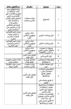 بانکداری ایرانی- سند «ساماندهی رمزدارایی‌ها» ‌استخراج و معاملات رمزدارایی­‌ها چهار دستگاه شامل بانک مرکزی، وزارت صمت، سازمان بورس و شورای ملی تامین مالی تولید را به عنوان نهادهای اصلی تنظیم‌گری حوزه رمزدارایی معرفی کرده و ۹ وظیفه بر دوش آنها نهاده است.