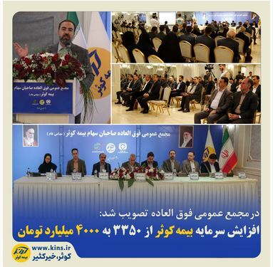 در مجمع عمومی فوق العاده صاحبان سهام بیمه کوثر که به منظور تصمیمگیری در خصوص افزایش سرمایه برگزار گردید، سرمایه شرکت از ۳۳۵۰ به ۴۰۰۰ میلیارد تومان افزایش یافت.