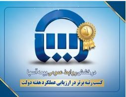 روابطعمومی بیمه آسیا در ارزیابی عملکرد دستگاه های تابعه وزارت امور اقتصادی و دارایی در هفته دولت، با کسب بالاترین امتیاز ، بهعنوان روابط عمومی برتر معرفی شد.