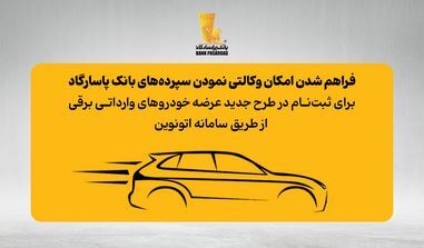امکان وکالتی نمودن غیرحضوری تمامی حسابهای «بانک پاسارگاد» به منظور ثبتنام در مرحله جدید (دوم) طرح عرضه خودروهای وارداتی، فراهم شد.