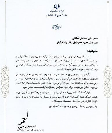 حمایتهای بانک رفاه کارگران از توسعه آموزشهای مهارتی مورد قدردانی وزیر تعاون، کار و رفاه اجتماعی قرار گرفت.