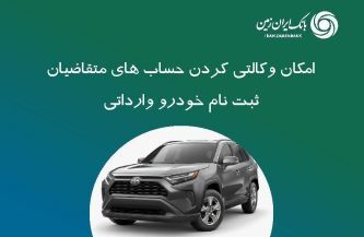 امکان معرفی حساب وکالتی برای ثبت نام خودرو وارداتی در بانک ایران زمین فراهم است.