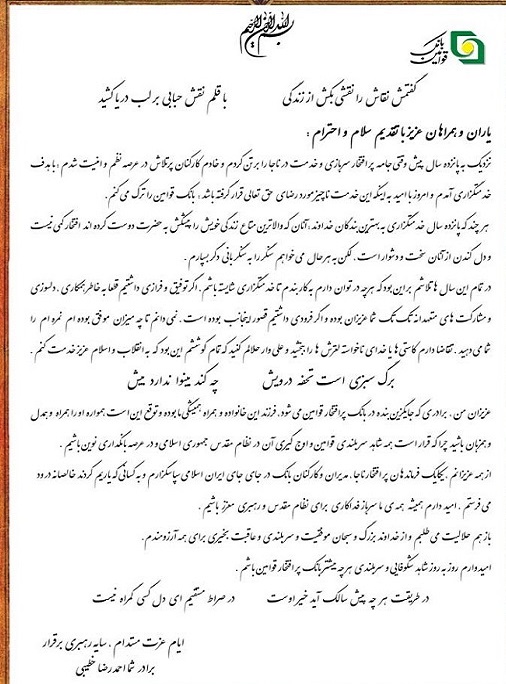 متن خداحافظی مدیرعامل اسبق بانک قوامین