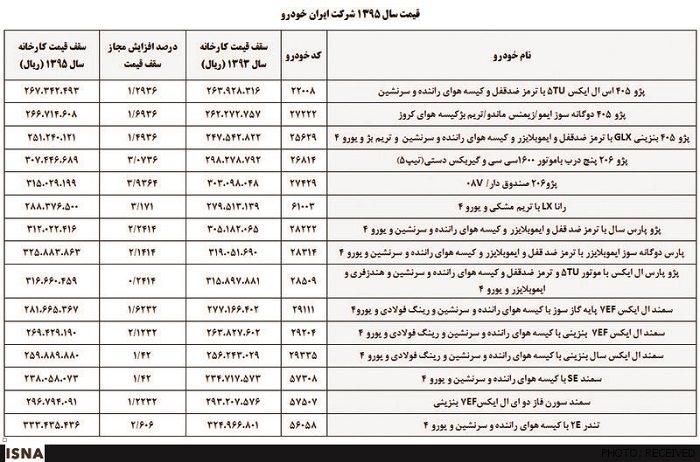 به گزارش خبرنگار ایسنا، براساس مصوبه شماره 247 شورای رقابت در تاریخ 6 اردیبهشتماه 1395 و طبق محاسبات صورت گرفته در مرکز ملی رقابت جداول سقف قیمتی انواع خودرو در سال 1395 و ضرایب افزایش مجاز سقف قیمتی در سال 1395 برابر با 1.5 درصد اعلام شد.